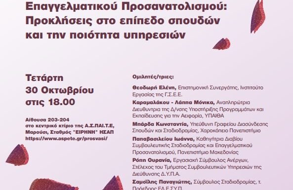 Το Ζάννειο Πρότυπο Γυμνάσιο διοργανώνει πρόγραμμα ενδοσχολικού επαγγελματικού προσανατολισμού για τους μαθητές της Γ’ γυμνασίου πριν τη μετάβαση στο Λύκειο. Το πρόγραμμα έχει έναρξη εντός του μηνός Νοεμβρίου, εντάσσεται στον παιδαγωγικό σχεδιασμό του σχολείου και υλοποιείται με τη συνεργασία των εκπαιδευτικών στα πλαίσια των εργαστηρίων δεξιοτήτων Έχει σαν στόχο την υποστήριξη των εφήβων στη διερεύνηση […]